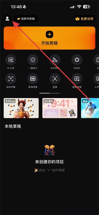 1、打開小影APP,點擊左上角的個人圖標(biāo)。