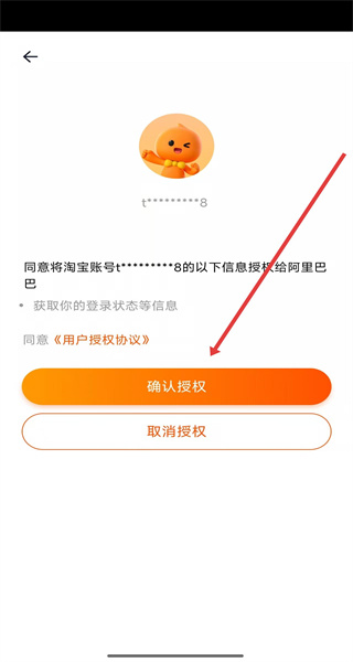 3、在跳轉(zhuǎn)進(jìn)入到淘寶賬號(hào)授權(quán)頁(yè)面時(shí),可以點(diǎn)擊下方確認(rèn)授權(quán)按鈕,完成使用淘寶賬號(hào)登錄。