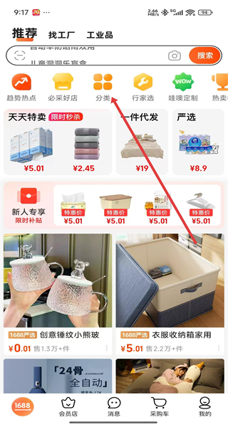 1、在可以在阿里巴巴首頁(yè)中,點(diǎn)擊分類按鈕查找喜歡的商品。