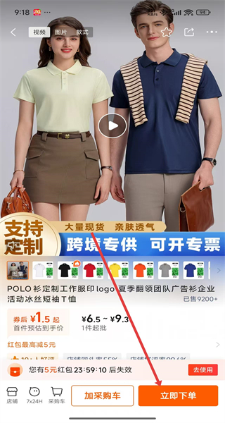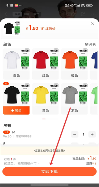 4、在選擇好衣服型號(hào)和顏色等信息后,點(diǎn)擊立即下單即可購(gòu)買。