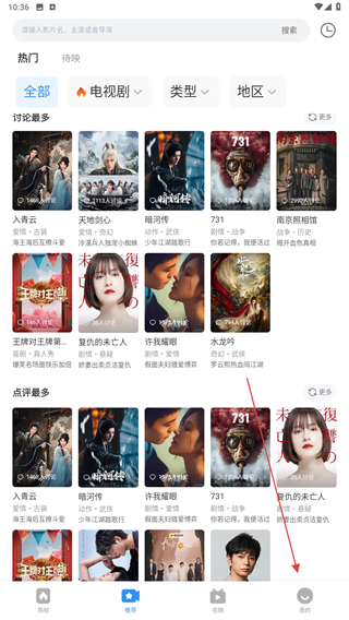 1、打開APP進入到推薦的頁面,找到并點擊點評最多的電視劇。