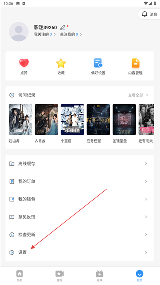 2、進入我的頁面內(nèi),點擊最下方設(shè)置的功能按鈕。