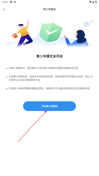 4、在青少年模式的頁面內(nèi),熟知后點擊開啟按鈕即可。