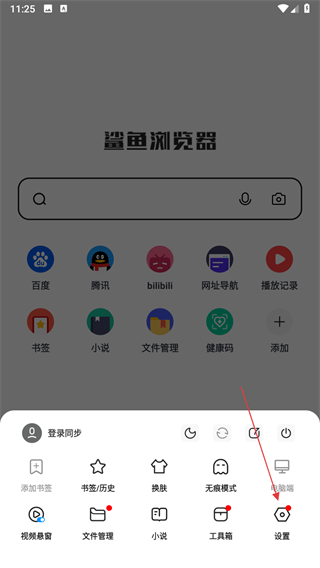1、打開鯊魚瀏覽器,點(diǎn)擊三條橫線菜單按鈕。