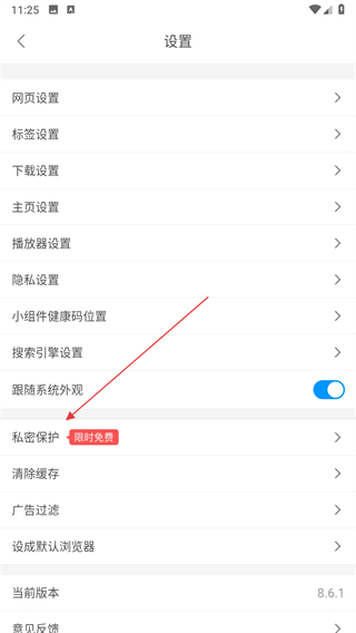 3、進(jìn)入設(shè)置頁(yè)面后,點(diǎn)擊私密保護(hù)選項(xiàng)。
