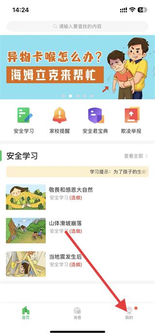 1、打開(kāi)安全教育平臺(tái),點(diǎn)擊底部導(dǎo)航欄中的我的選項(xiàng)。