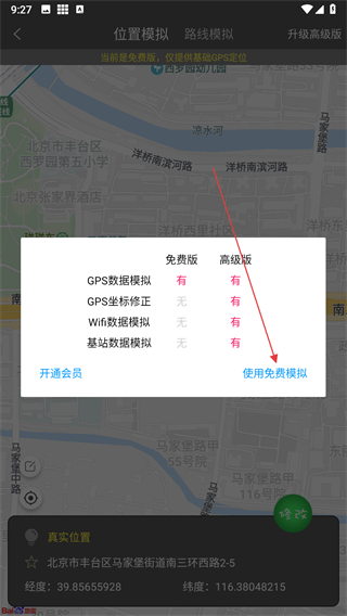 4、點(diǎn)擊之后會彈出免費(fèi)版與高級版功能對比窗口,點(diǎn)擊使用免費(fèi)模擬選項(xiàng),即可完成修改。