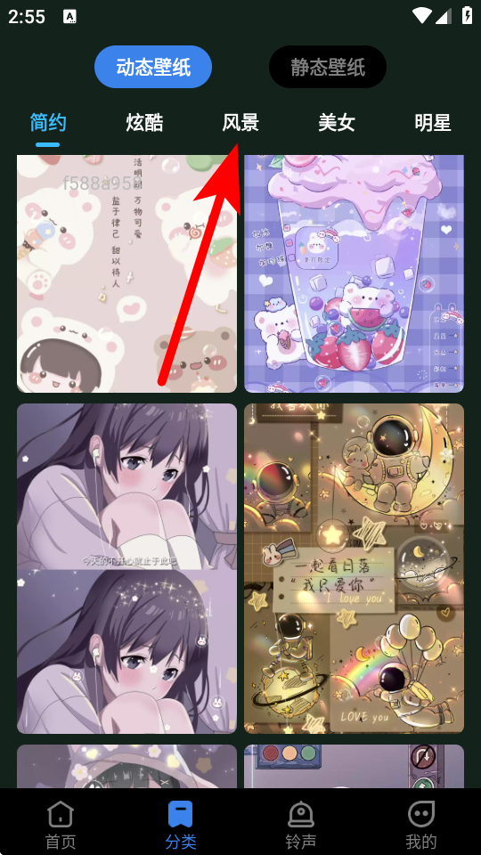 2、在分類界面中,點(diǎn)擊靜態(tài)壁紙或動態(tài)壁紙標(biāo)簽,篩選壁紙類型。