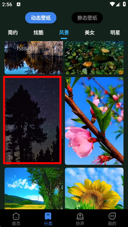 2、在分類界面,點(diǎn)擊風(fēng)景分類,進(jìn)入風(fēng)景壁紙列表頁面。