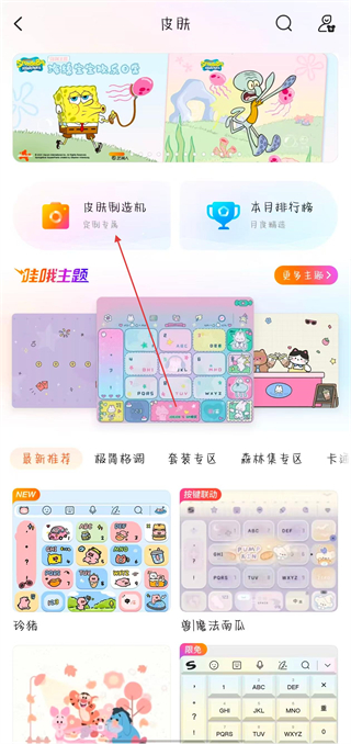 1、打開(kāi)搜狗輸入法,進(jìn)入裝扮商城界面,點(diǎn)擊皮膚選項(xiàng),進(jìn)入皮膚界面。