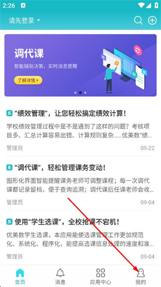 1、打開江陰教育app,點擊底部導(dǎo)航欄的我的選項。