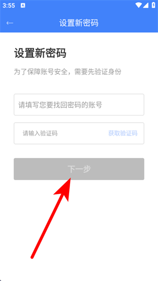 2、進入身份驗證頁面,填寫賬號和驗證碼,然后點擊下一步。