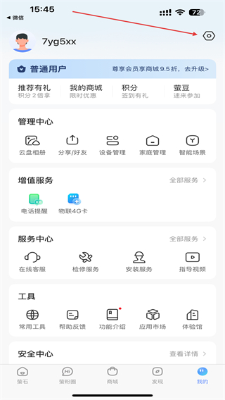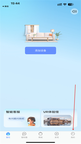 1、打開(kāi)螢石云視頻APP,在首頁(yè)右下角點(diǎn)擊我的圖標(biāo)。