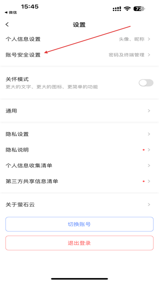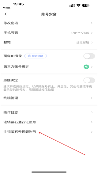 4、進(jìn)入賬號(hào)安全的頁(yè)面內(nèi),點(diǎn)擊下方注銷(xiāo)螢石云視頻賬號(hào)。