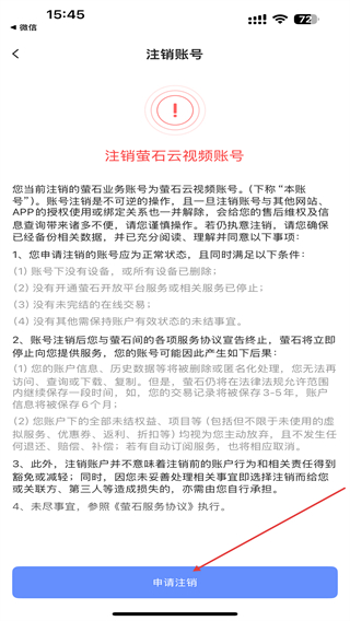 5、仔細(xì)閱讀注銷(xiāo)需知后,點(diǎn)擊申請(qǐng)注銷(xiāo)的功能按鈕即可。