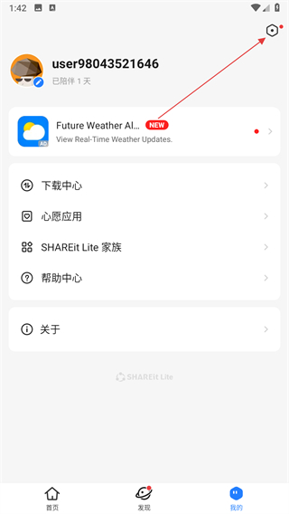2、在個(gè)人中心頁(yè)面,點(diǎn)擊右上角設(shè)置圖標(biāo),進(jìn)入設(shè)置頁(yè)面。