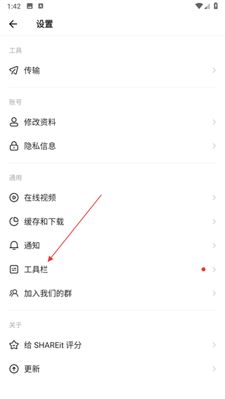 3、在設(shè)置頁(yè)面,點(diǎn)擊工具欄選項(xiàng),進(jìn)入工具欄頁(yè)面。