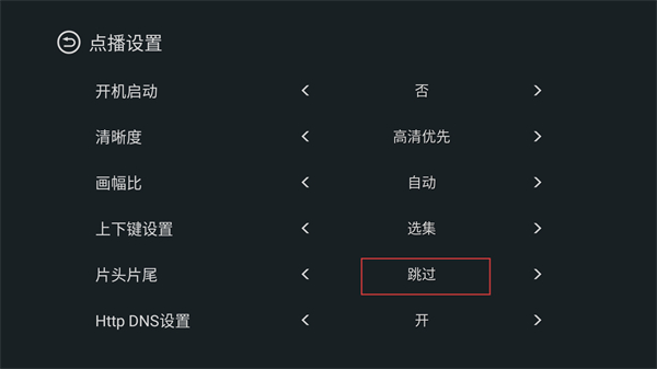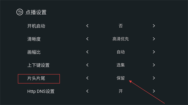 3、進入點播設(shè)置的頁面內(nèi),在片頭片尾右側(cè)點擊保留。