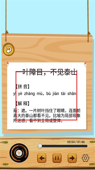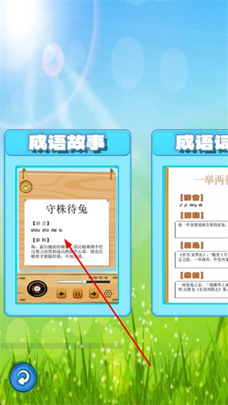 收聽成語故事內(nèi)容,在學(xué)成語的時(shí)候就能點(diǎn)擊其中音頻播放功能收聽故事;