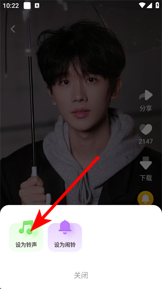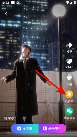 3、在壁紙詳情頁面,點擊設(shè)鈴聲選項,彈出設(shè)置選項窗口。
