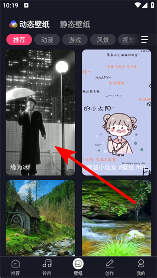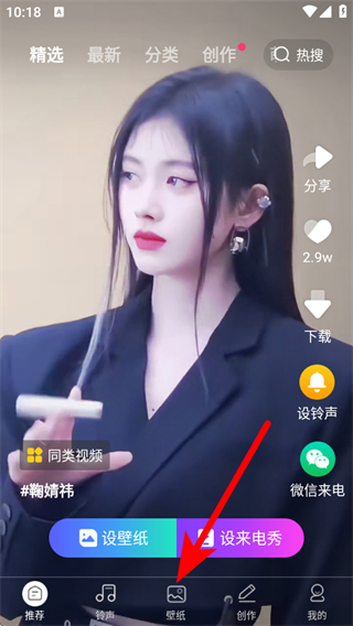 1、在來電秀秀app首頁,點擊下方壁紙選項,進入壁紙界面。