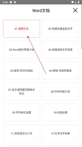 3、進入Word文檔教程列表后,選擇想要觀看的教程。