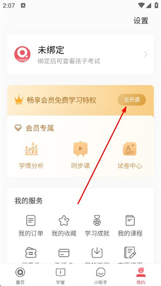 2、在我的頁(yè)面中,點(diǎn)擊暢享會(huì)員免費(fèi)學(xué)習(xí)特權(quán)區(qū)域的去開(kāi)通按鈕。
