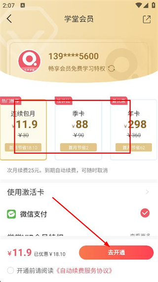 3、選擇需要的套餐,點(diǎn)擊去開(kāi)通,根據(jù)提示完成支付即可開(kāi)通會(huì)員。