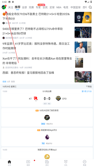 1、打開直播吧app,在推薦的頁面內(nèi)找到正在直播比賽的內(nèi)容,點(diǎn)擊即可跳轉(zhuǎn)到該頁面。