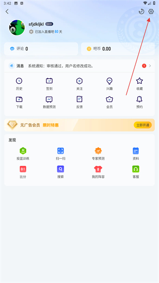 2、在個(gè)人中心的界面內(nèi),點(diǎn)擊右上角設(shè)置的功能按鈕。