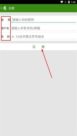 4、在注冊頁面填寫昵稱、用戶名、密碼后,點(diǎn)擊注冊。