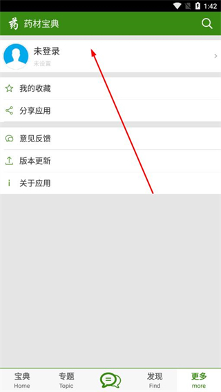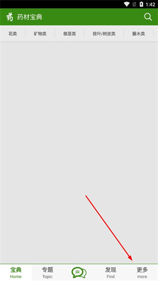 1、打開藥材寶典APP,點(diǎn)擊導(dǎo)航欄中的更多。