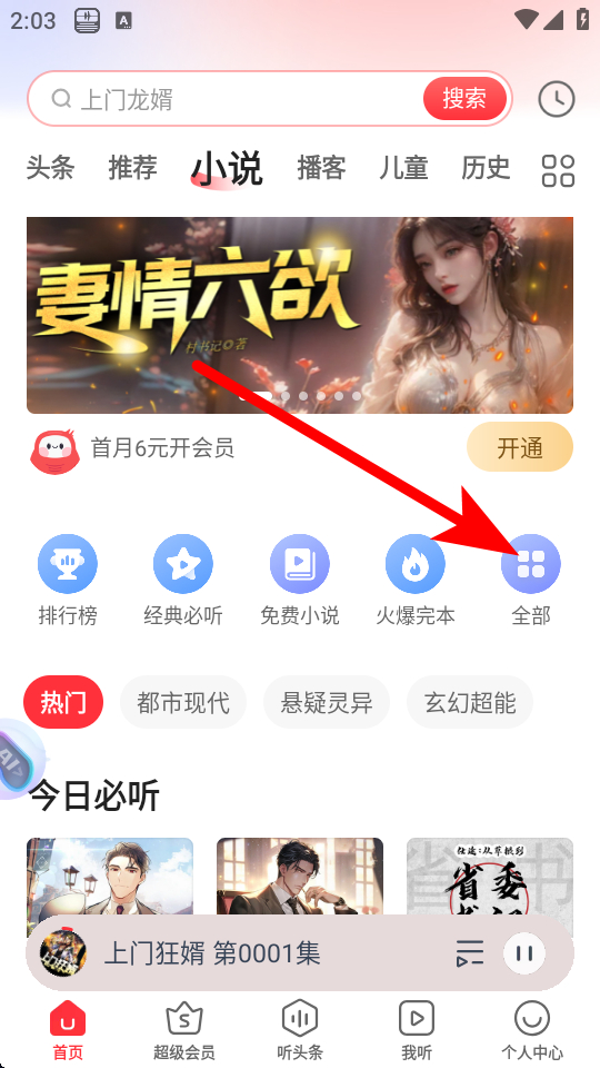 2、在小說頻道頁面,點擊全部選項,進入全部小說頁面。