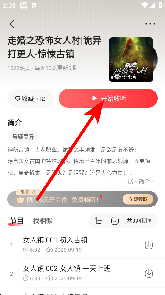 4、在小說詳情界面,然后點擊開始收聽按鈕。