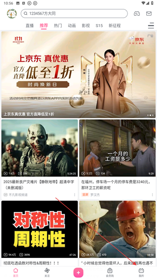 1、打開b站APP,進(jìn)入到首頁內(nèi),在分類欄找到影視的圖標(biāo)。