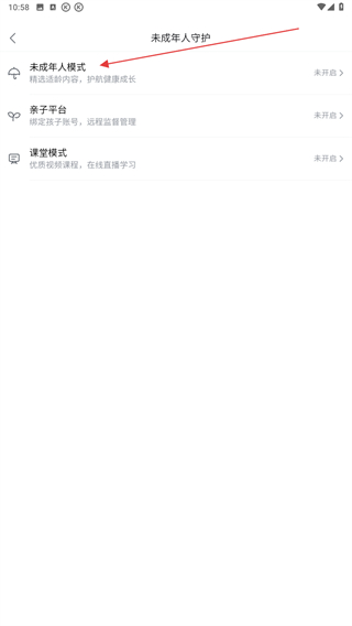 3、進(jìn)入未成年人守護(hù)的界面內(nèi),點(diǎn)擊未成年人模式的按鈕。