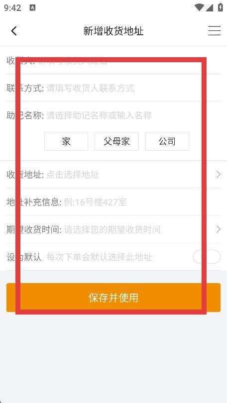 4、按要求填寫完信息,點擊保存并使用,即可成功添加地址。