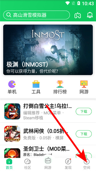 1、在葫蘆俠首頁,點(diǎn)擊右下角空間選項(xiàng),進(jìn)入個(gè)人空間頁面。
