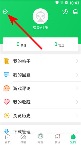 2、在個(gè)人空間頁面,點(diǎn)擊左上角設(shè)置圖標(biāo),進(jìn)入設(shè)置界面。
