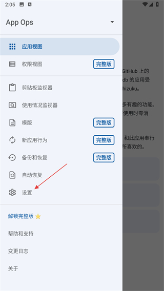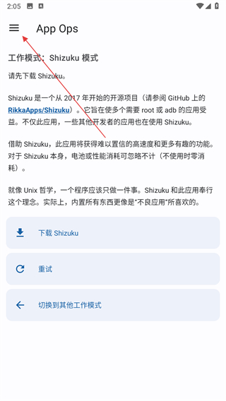 1、打開App Ops應用,點擊左上角的三條橫線菜單按鈕。