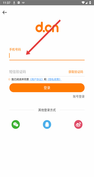3、在登錄界面輸入手機號碼,勾選協(xié)議后點擊“獲取驗證碼”。