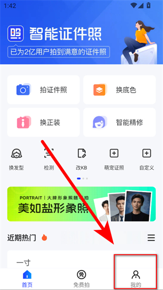 1、打開(kāi)智能證件照APP,點(diǎn)擊右下角我的,進(jìn)入個(gè)人頁(yè)面。