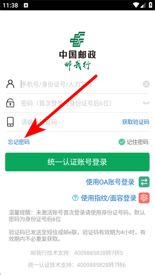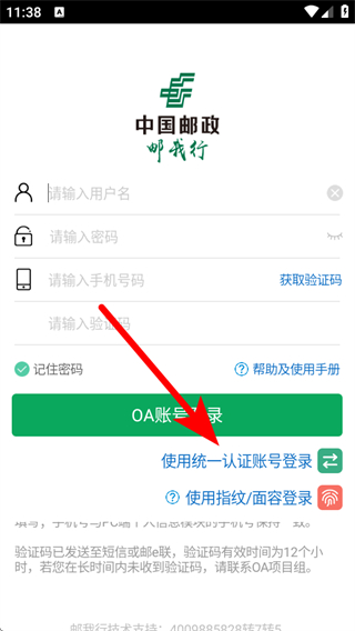 1、打開郵我行APP,在登錄界面點擊使用統(tǒng)一認(rèn)證賬號登錄。