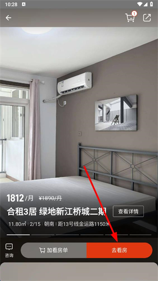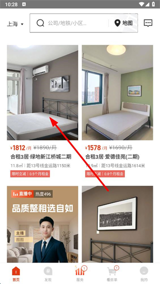 1、在自如app首頁選擇目標房源并點擊進入房源詳情頁。