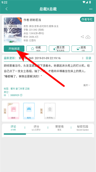 4、在小說詳情界面,點(diǎn)擊開始閱讀即可查看該小說資源。