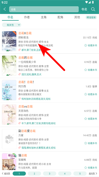 3、在搜索結(jié)果頁(yè)面,點(diǎn)擊目標(biāo)小說,進(jìn)入小說詳情界面。