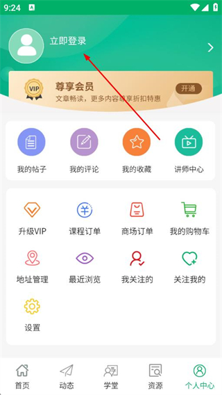 2、在個(gè)人中心頁(yè)面點(diǎn)擊立即登錄區(qū)域,進(jìn)入登錄注冊(cè)頁(yè)面。