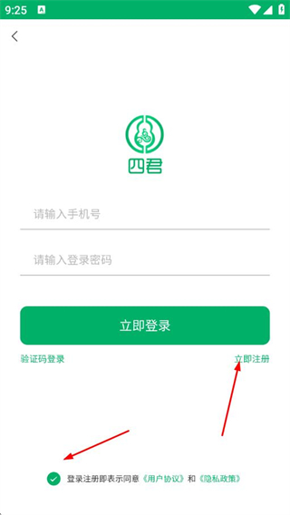 3、在登錄注冊(cè)頁(yè)面點(diǎn)擊立即注,勾選用戶協(xié)議。