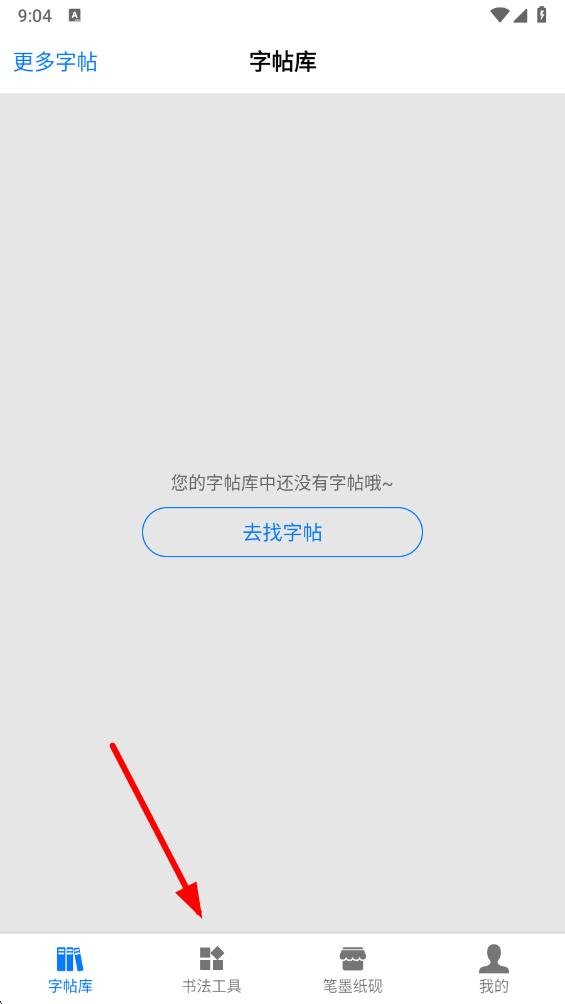 1、打開(kāi)書(shū)法碑帖大全app,點(diǎn)擊底部導(dǎo)航欄中的書(shū)法工具,進(jìn)入書(shū)法工具界面。