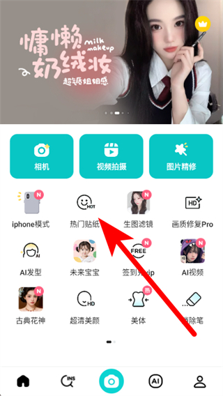 1、打開b612咔嘰APP,點(diǎn)擊熱門貼紙,進(jìn)入拍攝頁面。